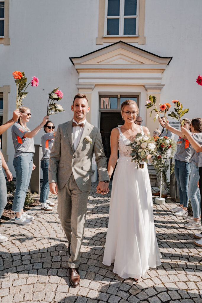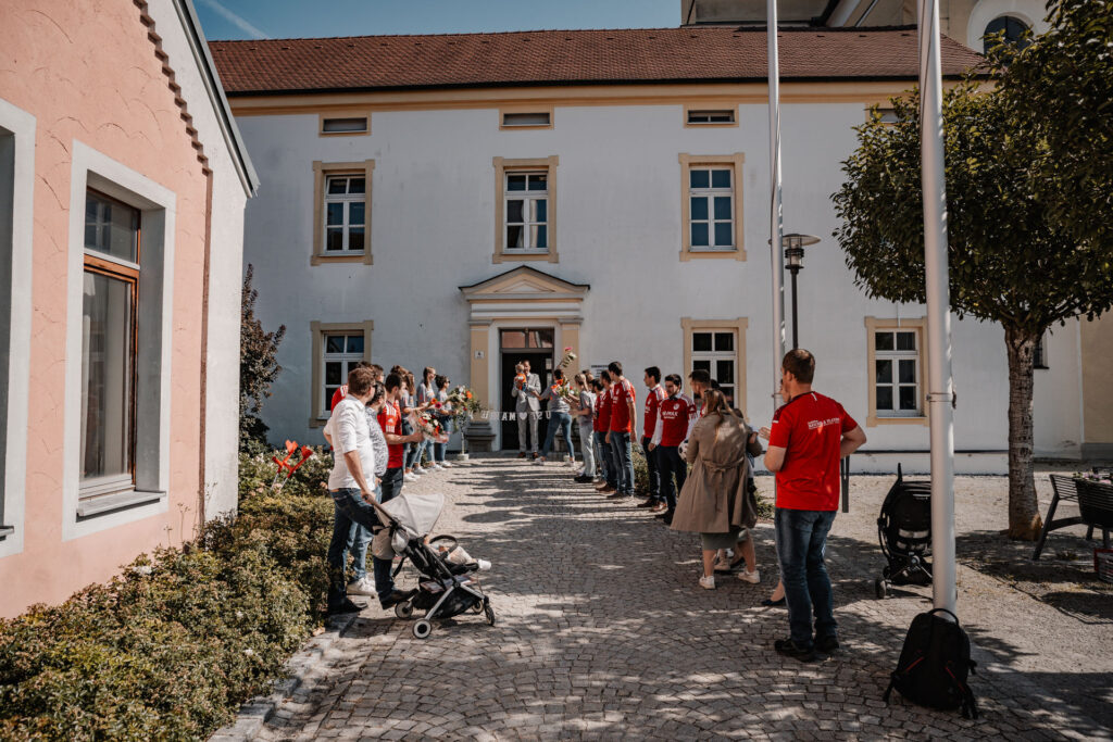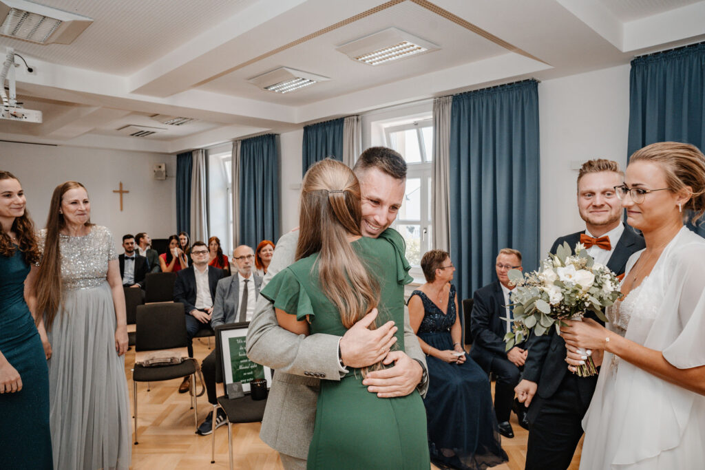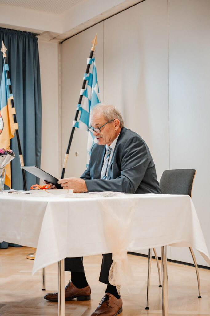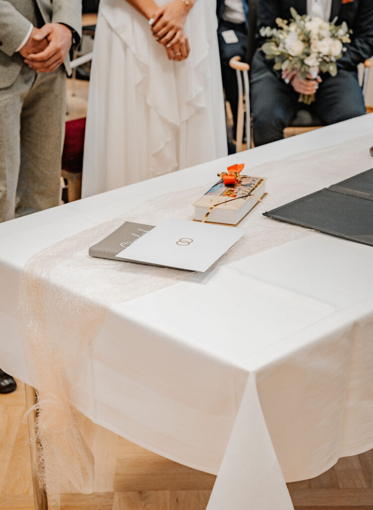 Nach diesem besonderen Moment machen sich Moesha und Marco gemeinsam auf den Weg zum Standesamt in Aufhausen, wo sie ihre Liebe offiziell besiegeln sollten. Die kleine Gemeinde von Aufhausen bot eine idyllische Kulisse für diese intime Zeremonie. Im Standesamt angekommen, warteten bereits die engsten Familienangehörigen und Freunde des Paares, die den besonderen Moment mit ihnen teilen wollten